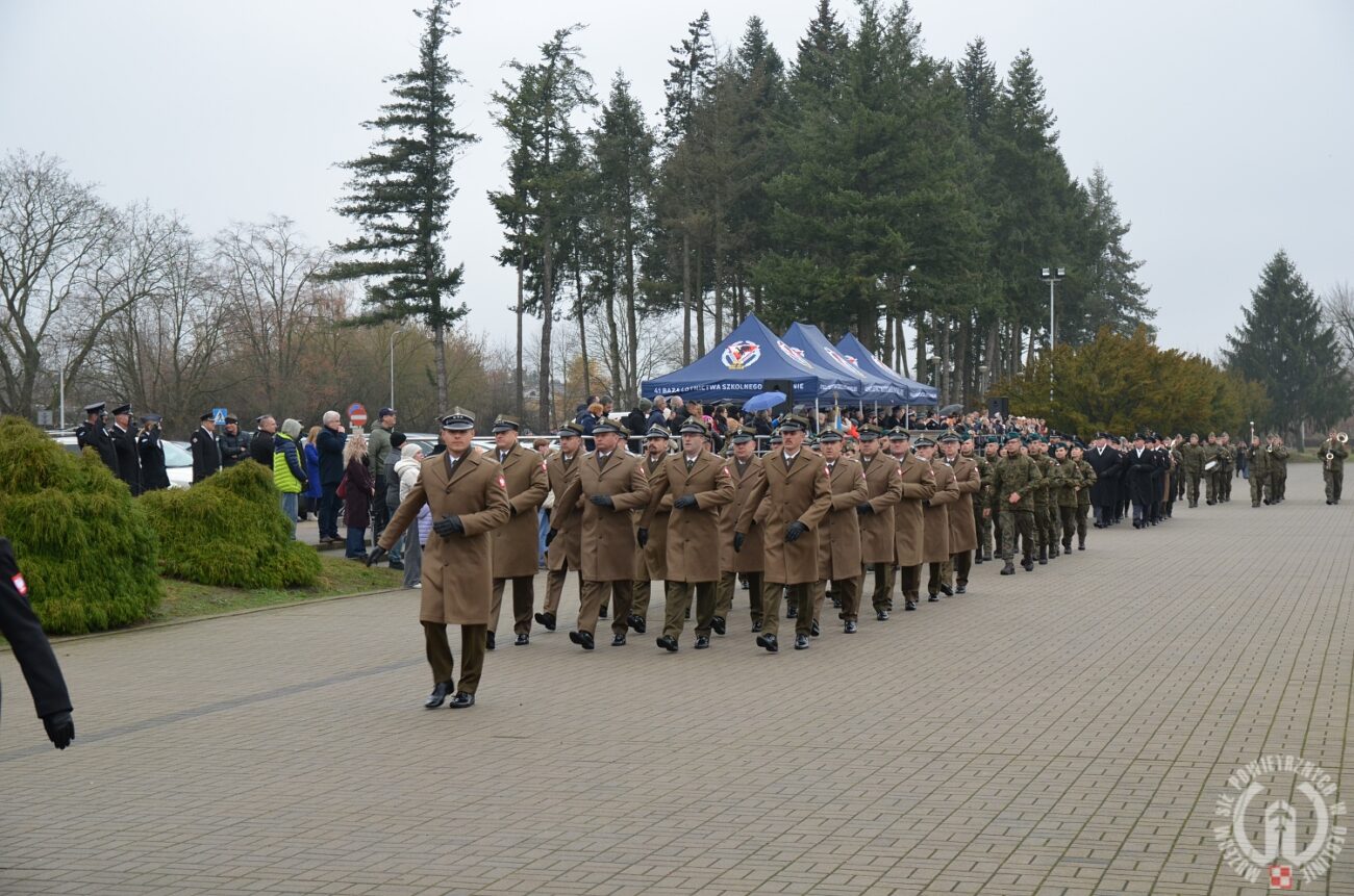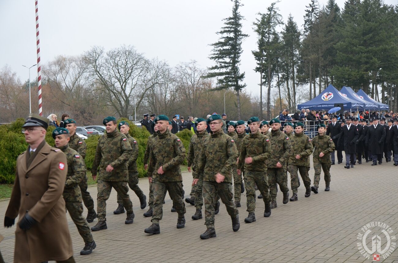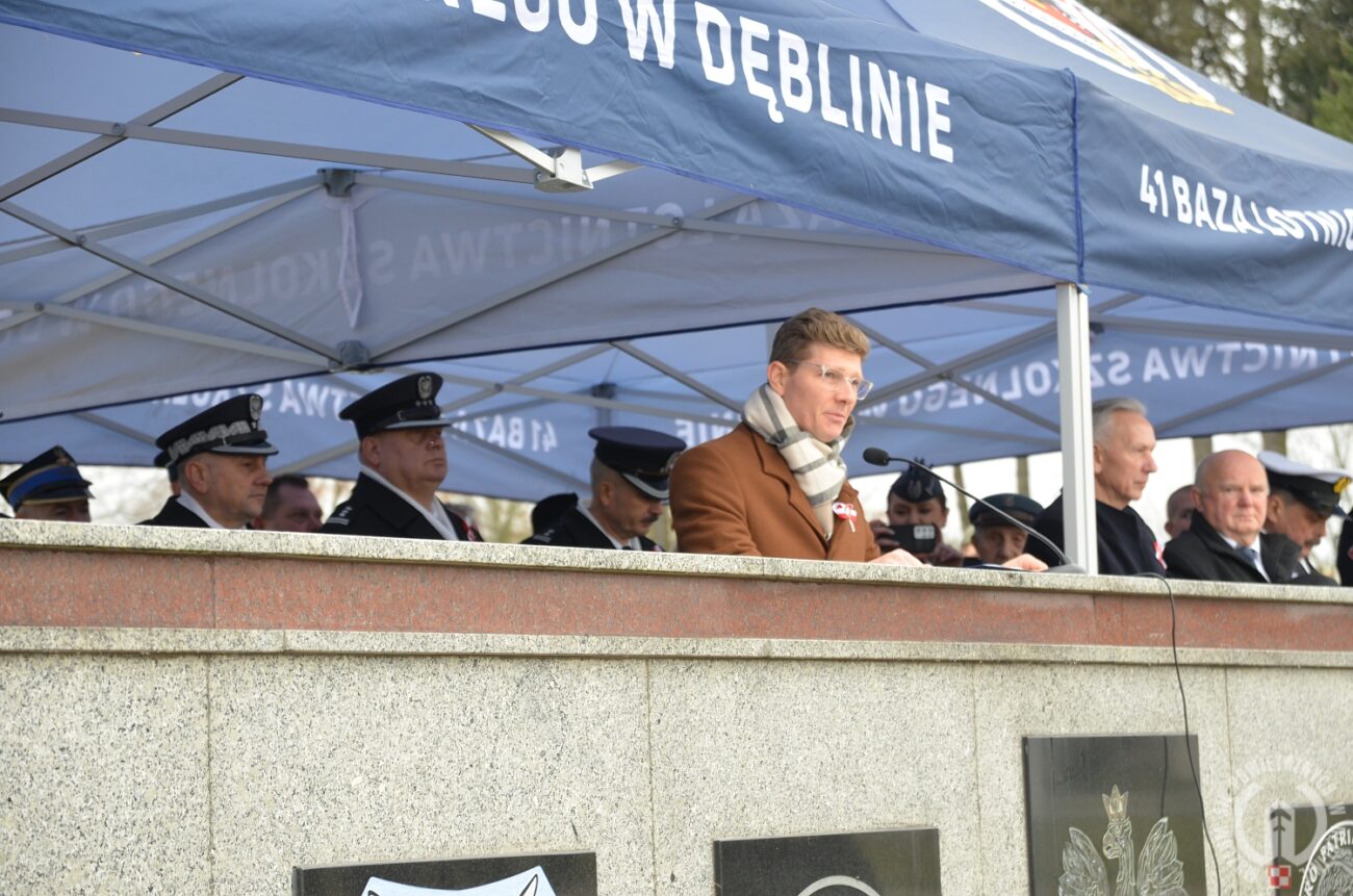List Ministra ON Władysława Kosiniaka-Kamysza przeczytał gen. bryg. pil. Waldemar Gołębiowski, Dowódca 4 Skrzydła Lotnictwa Szkolnego. Wicepremier podkreślił w nim wolę Narodu Polskiego do bycia gospodarzami na swojej ziemi, co miało wyraz w niezłomnych walkach o wolność i niepodległość przez cały okres zaborów i I wojny światowej. W imieniu władz Dęblina głos zabrał Tomasz Mikusek, Przewodniczący Rady Miasta, który między innymi przypomniał prawdę o charakterze wolności, która jest nie tylko dana raz na zawsze, ale także stanowi zadanie dla każdego człowieka. Odbyła się także ceremonia przyznania awansów na wyższe stopnie wojskowe oraz wręczenia odznaczeń Żołnierzom i Oficerom, którym serdecznie gratulujemy. Uroczystości przy pomniku zakończyły się Apelem Pamięci, salwą honorową i złożeniem wieńców pod pomnikiem oraz defiladą pododdziałów.