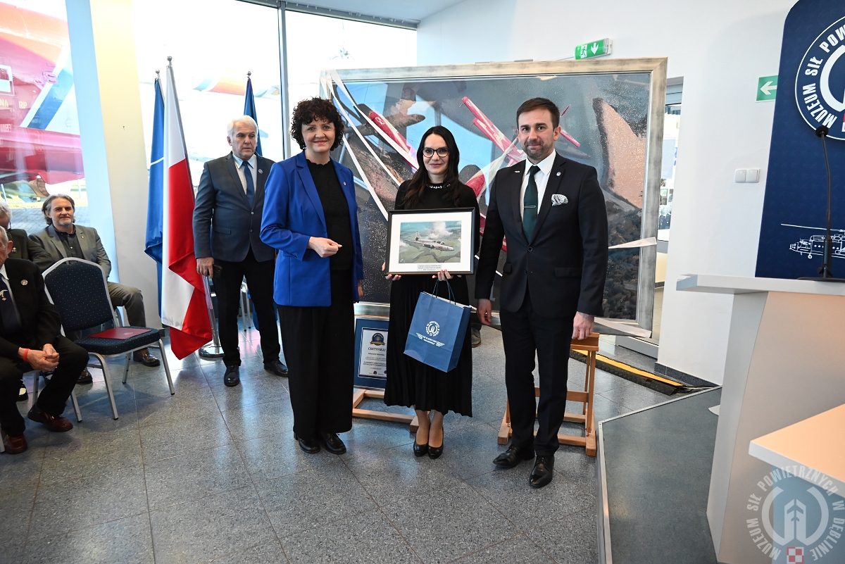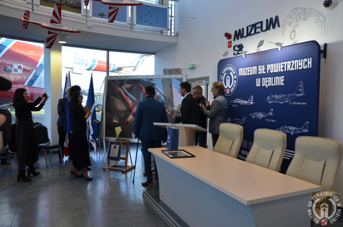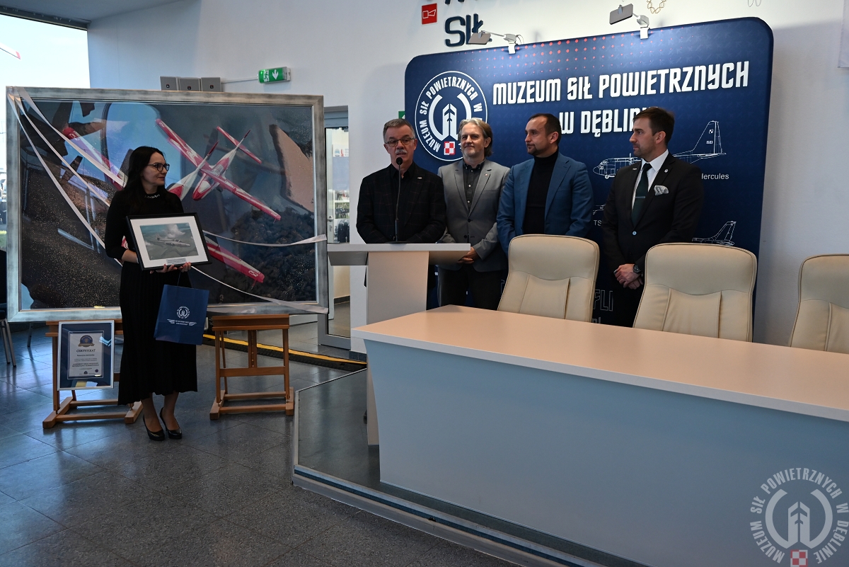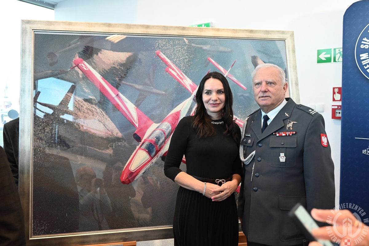 🛩️Oddajmy jeszcze głos wzruszonej autorce dzieła, która podczas ceremonii jego prezentacji dziękowała wielu osobom, które na różne sposoby wspierały ją w żmudnej pracy twórczej – „Bardzo się cieszę, że jesteście tutaj dziś ze mną i że miłość do lotnictwa łączy tak wiele osób. Niech marzenia dodają Wam skrzydeł.” Powiedziała także: „Pracę nad obrazem rozpoczęłam 7 listopada 2023 roku, a ukończyłam ją 20 lutego 2025 roku. Wykonanie obrazu ze zdjęcia w technice haftu diamentowego zajęło mi 618 godzin. (…) Wykonałam obraz o wymiarach 180,2 x 130,1 cm. Składa się on z 375.000 diamencików.”