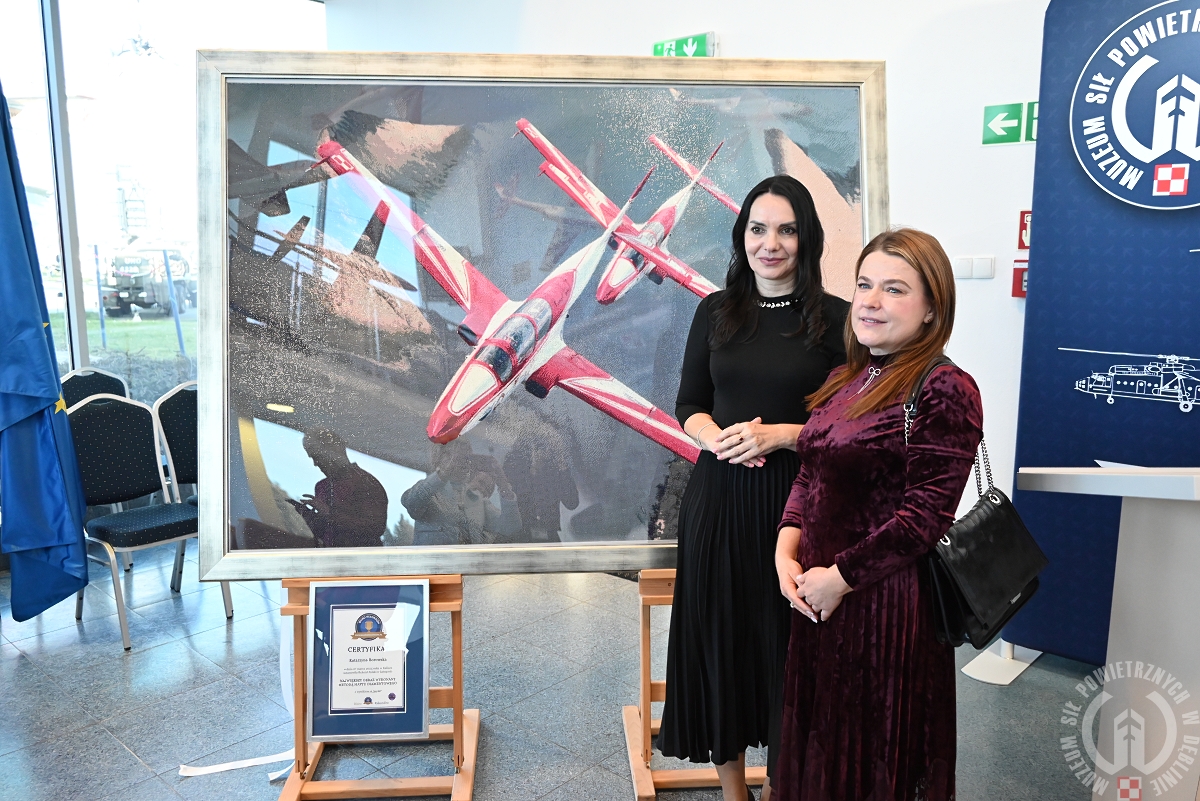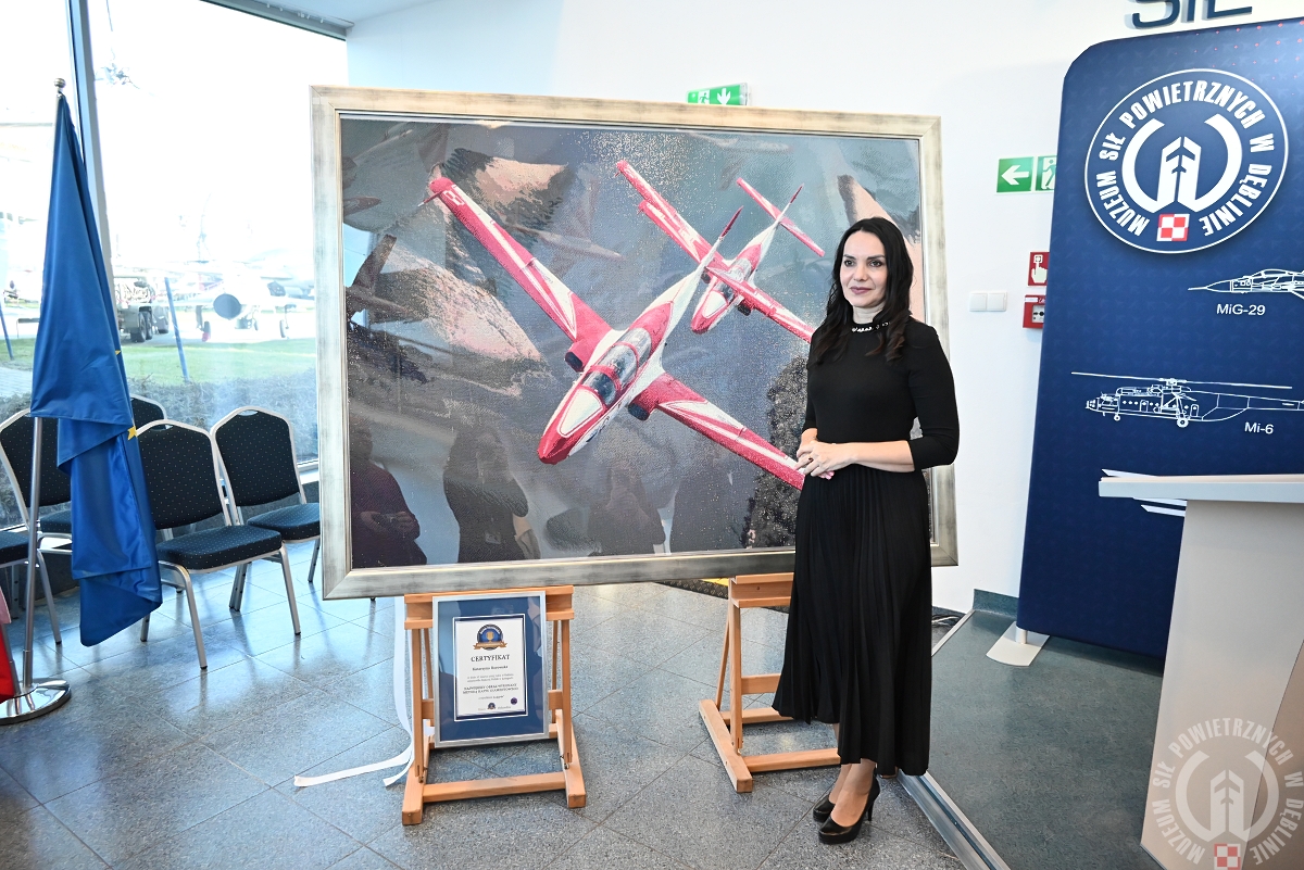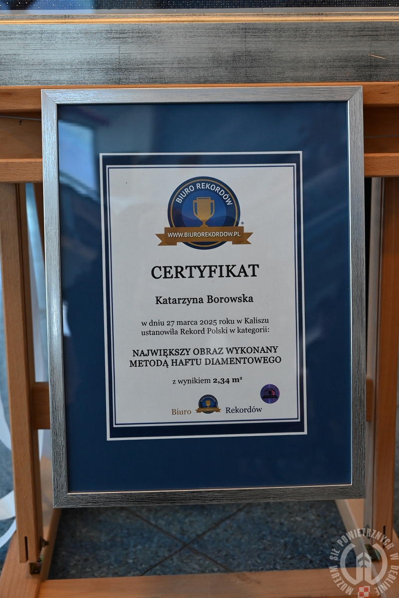 🛩️Katarzyna Borowska i jej „Diamentowe Iskry” ustanowiły oficjalnie uznany 🏆REKORD POLSKI w kategorii „Największy obraz wykonany metodą haftu diamentowego”. Obraz będzie eksponowany w Muzeum Sił Powietrznych w Auli im. płk. pil. Jerzego Bajana.