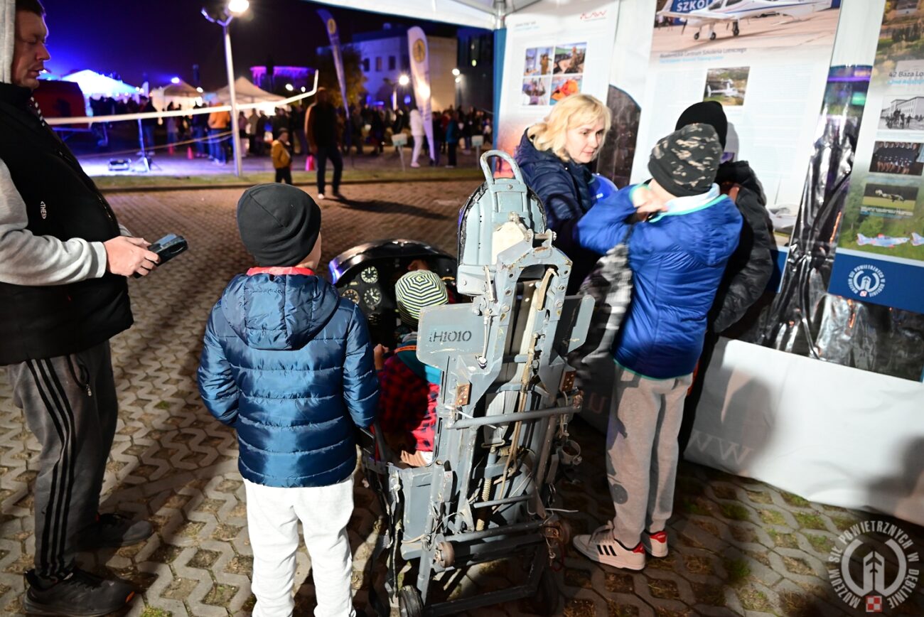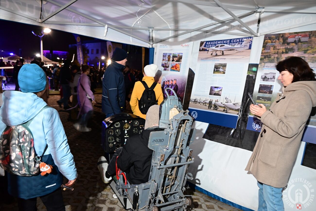 Na specjalnie przygotowanym stanowisku Muzeum odwiedzający mogli zapoznać się z historią dęblińskiej „Szkoły Orląt”, ale również osobiście doświadczyć namiastki służby pilota. Jedną z atrakcji było bowiem wejście do autentycznego kokpitu samolotu szkolno-treningowego TS-11 Iskra – maszyny, która przez dziesięciolecia służyła do szkolenia przyszłych pilotów Sił Powietrznych RP. To niezwykłe doświadczenie przyciągnęło zarówno dorosłych pasjonatów lotnictwa, jak i najmłodszych uczestników wydarzenia.