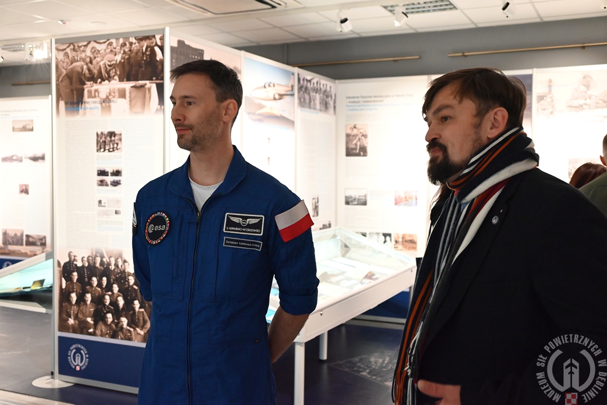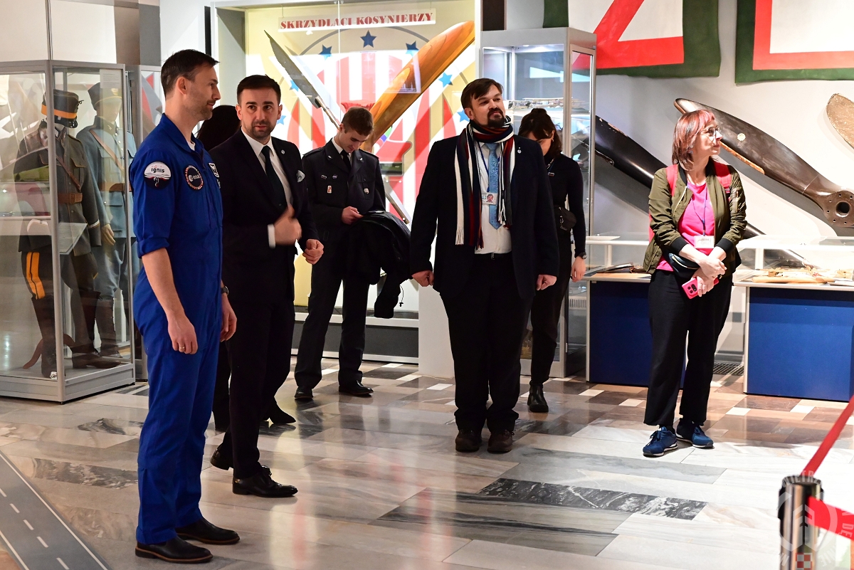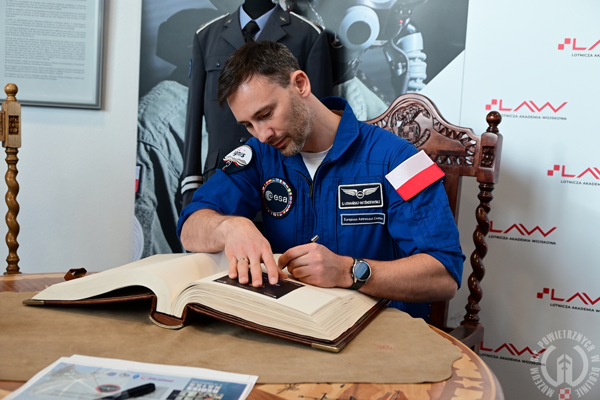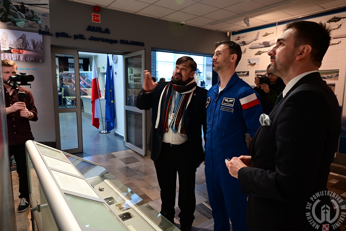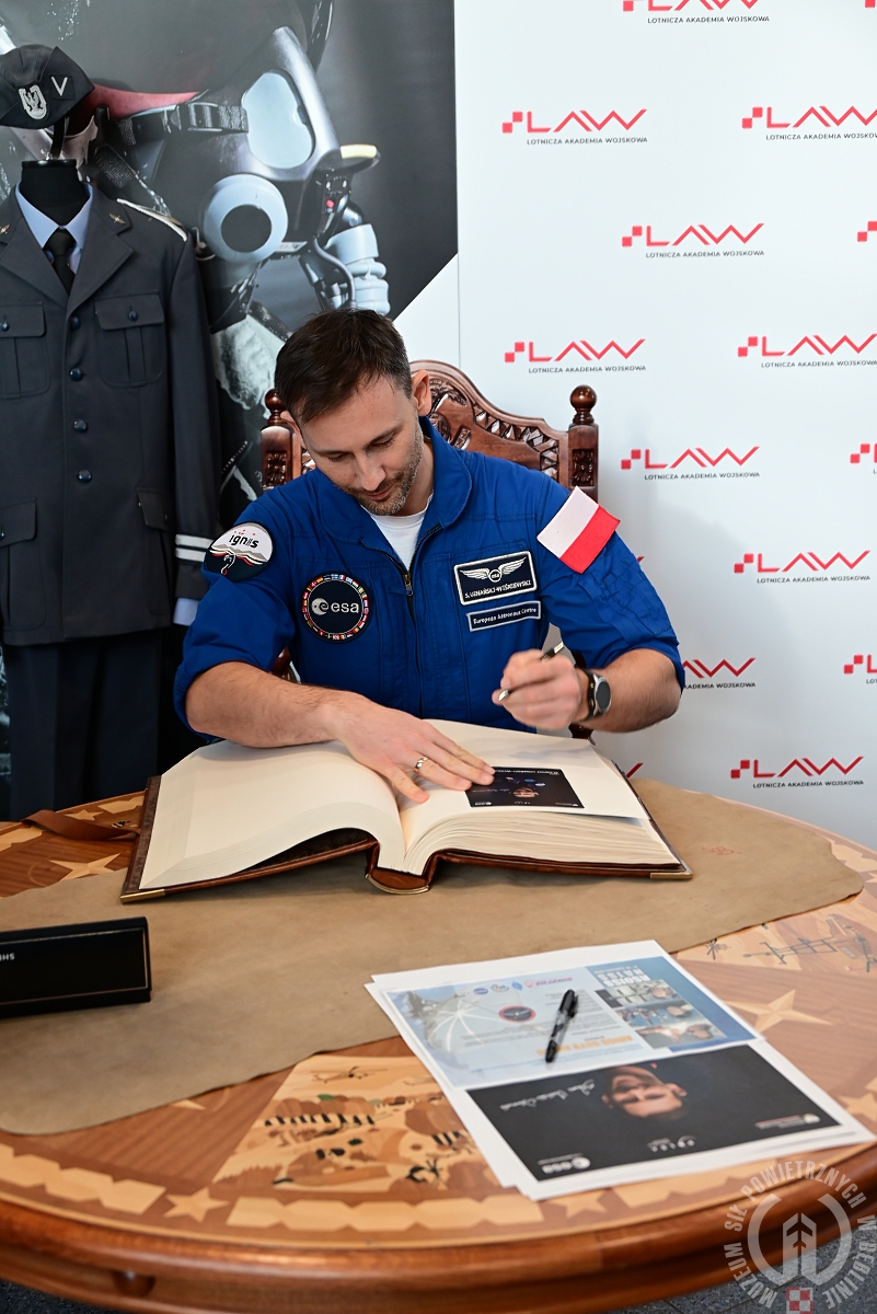 Podczas pobytu w Muzeum Sławosz Uznański-Wiśniewski przekazał na ręce Zastępcy Dyrektora Muzeum, Jakuba Mitka, pamiątkową naszywkę oraz przypinkę misji IGNIS – gest o ogromnym znaczeniu symbolicznym, który na trwałe wpisuje tę wizytę w historię naszej instytucji. Astronauta dokonał również wpisu do Księgi Pamiątkowej Muzeum, pozostawiając osobisty ślad swojej obecności w miejscu opowiadającym o polskich marzeniach o lataniu.